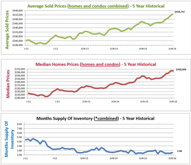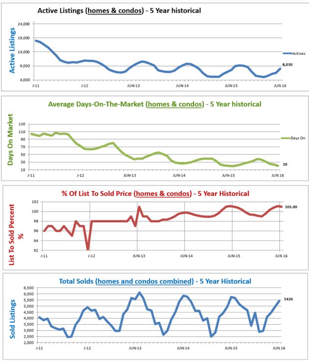 The average sale price of a single family detached home climbed to $448,804. Condos and townhomes saw price increases as well, reaching $297,930 on average, which is also four percent higher than last month, and a 14 percent year over year increase.