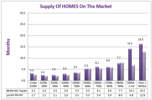 As of November 1st, we're still in a very strong sellers market which is confirmed by the continuing low levels of housing inventory. After inventory reached bottom this past Spring, the stock of Denver-Area houses has slowly been recovering. Market inventory increased over 50% since last March, when we bottomed out at a mere 6600 homes available for sale. We've now reached above the 10,000 mark, but almost half of that inventory is being sold each month. There's a long way to go to achieve 'market balance', which will occur at about 4 to 5 months of regular inventory.